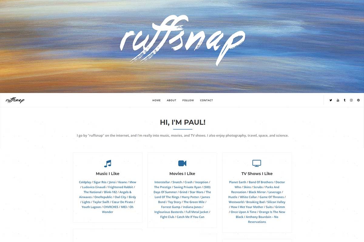 Ruffsnap is a personal blog website.